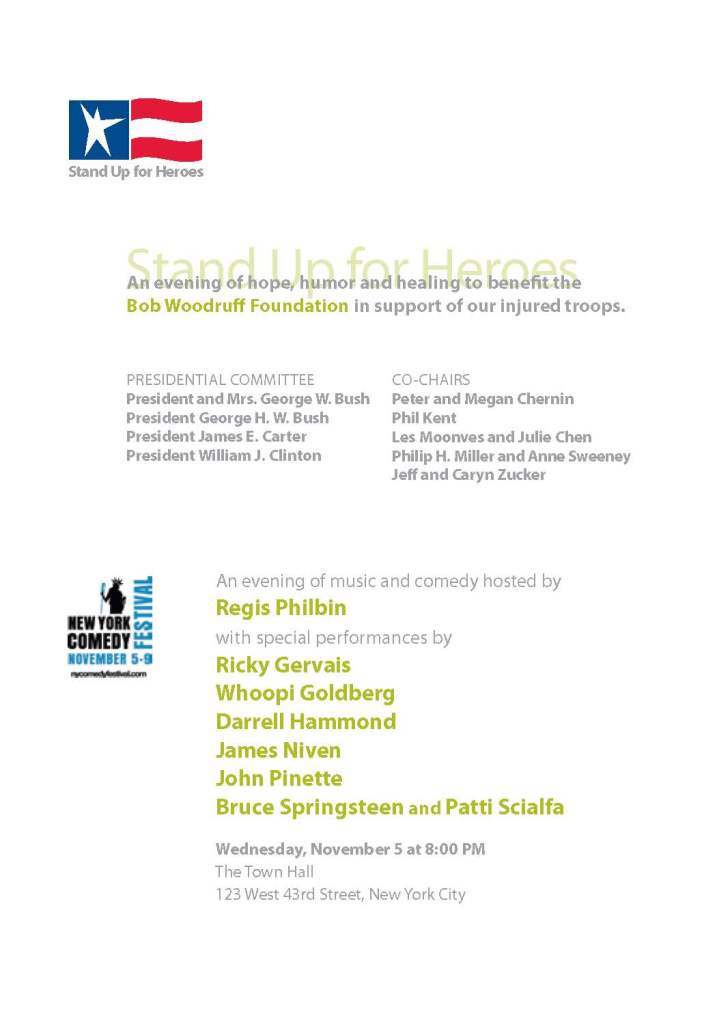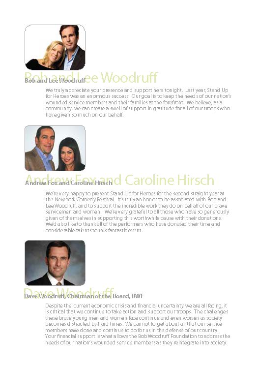 I had the privilege of creating the program for the first Stand Up for Heroes event. At that time, their branding was focused toward Remind.org, now it is known as Bob Woodruff Foundation. Here are a few samples from the program.